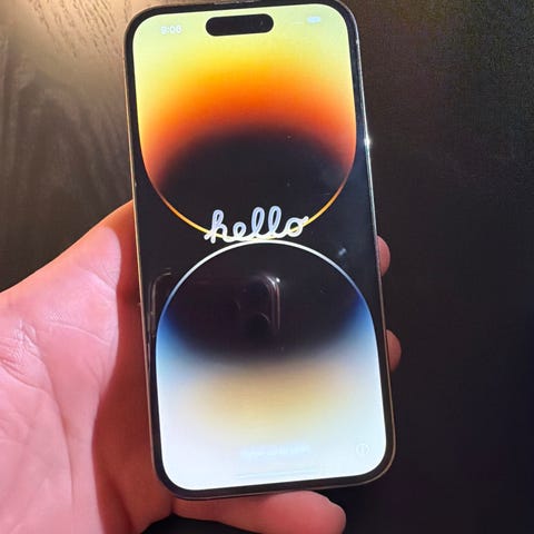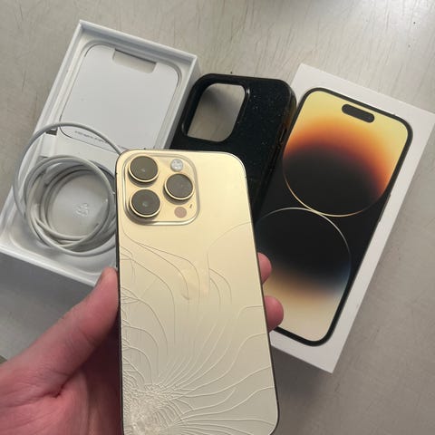 Apple iPhone 14 Pro älypuhelin, tallennustila 128 GB. Laitteessa on suuri kosketusnäyttö ja takana kolmoiskamerajärjestelmä. Runko on metallia ja lasia. Sopii yleiseen älypuhelinkäyttöön, kuten puheluihin, viestintään, sovellusten käyttöön ja valokuvaukseen. Kuvista näkyy puhelimen ulkonäkö ja mahdolliset vauriot tarkemmin.