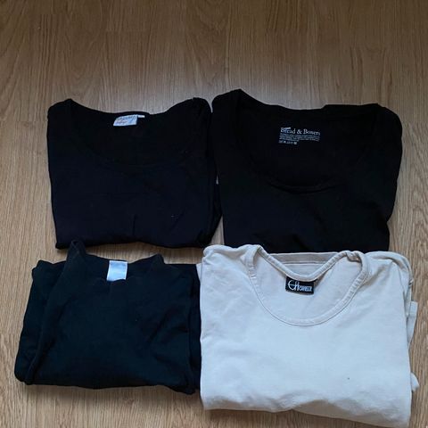 Neljä paitaa, muut M kokoa paitsi pitkähihainen paita xl.