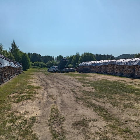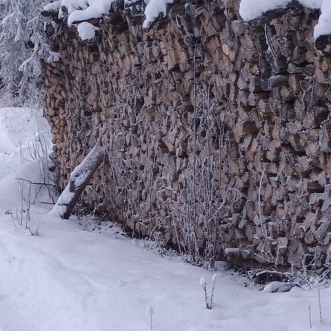 Puolimetristä kuivaa haapahalkoa kolmen pinometrin / viiden irtokuution erissä. Puut Karungissa.