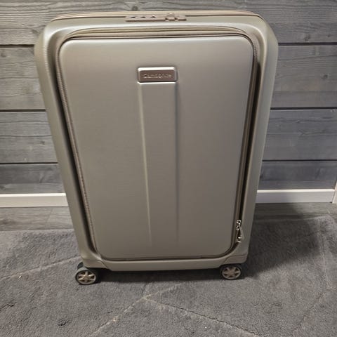 Myydään uusi, käyttämätön ja vielä muoveissaan oleva Samsoniten Nuon nelipyöräinen laajennettava matkalaukku 55cm, väriltään matt silver.