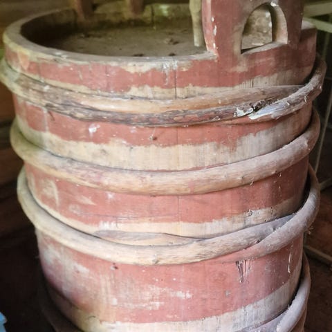 Tästä komia ja erittäin vanha puuharava vaikka koristeeksi. Piikkejä on poikki, joten voi myös ehostaa.