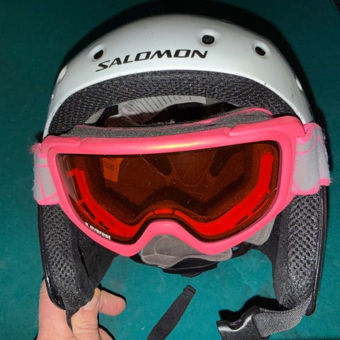 Yhden tytön laskettelussa käyttämä kypärä. Ei kaatumisia, eikä kypärää ole tiputettu/kolhittu. Koko 51-53cm. Kypärään on jäänyt tarran jäljet, kun siinä oli kiinni karvakorvat. Nouto haukilahti