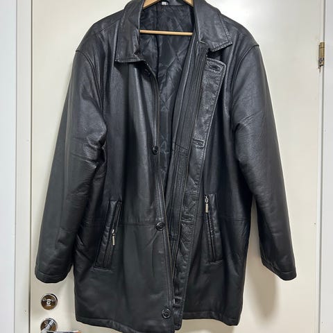 Miesten hyväkuntoinen musta nahkatakki, koko 54