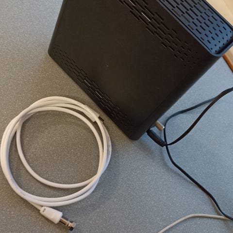 Ylimääräiseksi jäänyt toimiva Kaapelimodeemi TG2482 (Elisa). Kolmisen vuotta vanha kuidub tieltä pois.