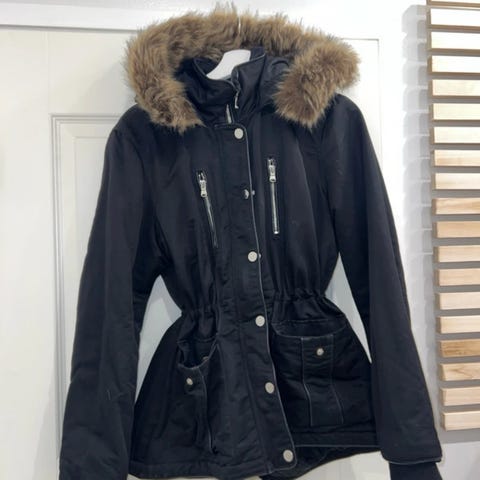 Elloksen talvitakki koko 40. Hyvässäkunnossa muuten, paitsi pieni tahra hihassa. Ei näkyvä. Sisätasku löytyy myös. Maksu mobilepayllä tai käteisellä. Nouto tai voidaan sopia keskustassa treffit.