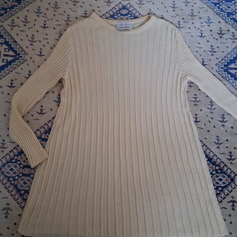 Kokomerkintä S, mutta mitoitus on reilu: kai-kai n.55cm ja olka-helma n.100cm, joten sopiva M (-L )kokoiselle .