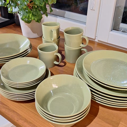 Myydään Teeman oliivin vihreät kahvikupit ja aluslautaset 5paria + 1 kuppi. Kunto oikein hyvä.