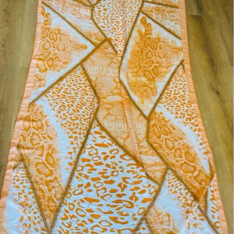 Kaunis punasävyinen huivi, ei tietoa materiaalista, koko 70x195