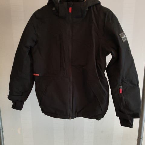 Pinkki harmaa Dr. Zipe lasten laskettelutakki. Kokoa 134/140. Irroitettava huppu, hihoissa peukalon kolot, tasku hissikortille ja vyötäröllä lumilukko.