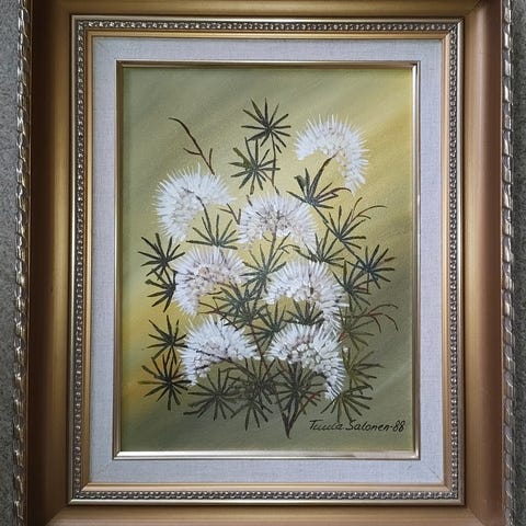 Erittäin hyväkuntoinen Tuula Salosen signeeraama taulu vuodelta 1986.