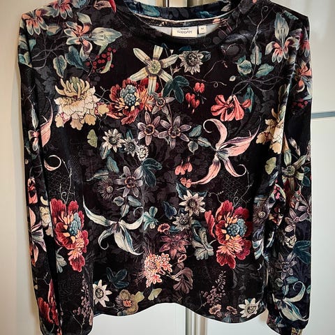 KappAhl paita, koko S. Materiaalina polyesteri. Paidassa on kirjava kukkakuviointi ja pitkät hihat. Sopii arki- ja vapaa-ajan käyttöön.