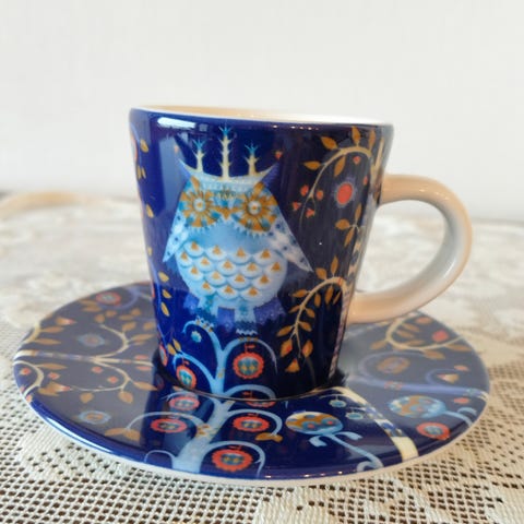 Iittala Taika espressokuppi+aluslautanen pöllökuvio valkoinen