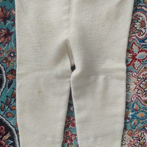Ruskovilla villahousut lapsille, koko 90. Valkoinen, hihaton malli, jossa pitkät lahkeet ja olkanapeilla suljettavat olkaimet. Materiaali on villa. Unisex-mitoitus sopii sekä tytöille että pojille. Soveltuu käytettäväksi esimerkiksi alusasuna tai välikerrastona viileämmässä säässä.