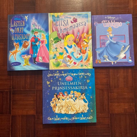 Prinsessa lastenkirjat. Kaksi Disneyn kirjaa, yksi ei ole. Tuhkimo-kirja, Prinsessa Ruusunen-kirja ja Bellen tie ystävyyteen-kirja. Yhteishinta 5€.
