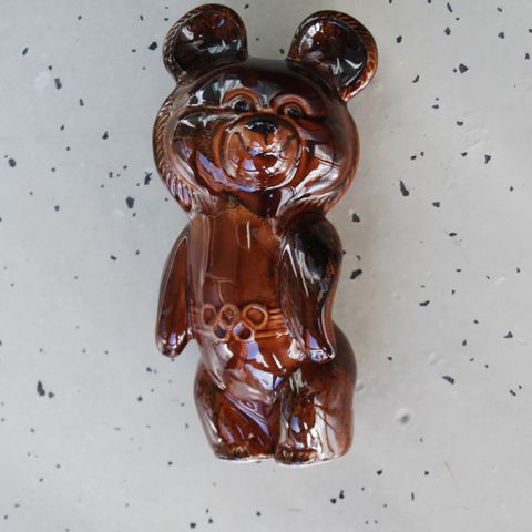 Moskovan Olympialaisten maskotti Micha-karhu jossa on hymyilevä vaaleankeltainen kuono ja tummempi korva-alue. Nallella on vyö, jossa on värikkäitä yksityiskohtia. Sopii esimerkiksi lasten leikkeihin tai koristeeksi. Materiaali on pehmeää plyyshiä, jalassa on tassukuvioidut merkit.Nouto tai postitus.Käteinen tai mobilepay
