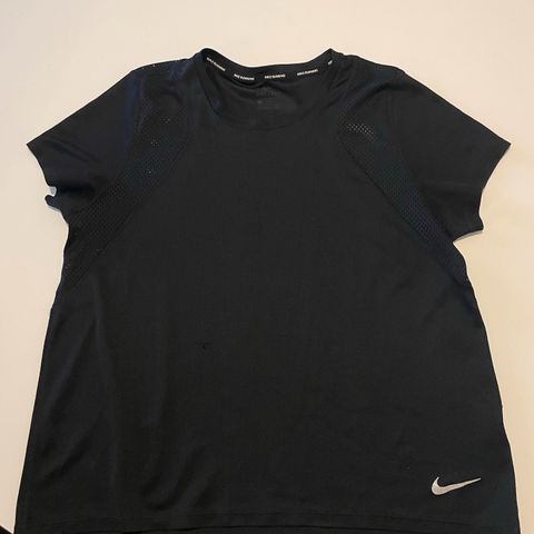 Nike Pro The Nike Tee t-paita naisille. Koko M. Väriltään musta, edessä NIKE PRO -teksti ja takana suuri Nike-logo. Lyhythihainen ja lyhyt malli, pyöreä pääntie. Materiaali joustavaa ja hengittävää tekokuitua (polyesterisekoitus pesulapun mukaan). Sopii arkeen ja monenlaiseen liikuntaan.