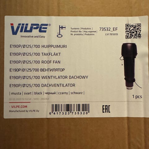 Huippuimuri vilpe 125. Tuuletusputki. 1kpl läpivienti.eristekouru 150mm. Tiilenpunainen.