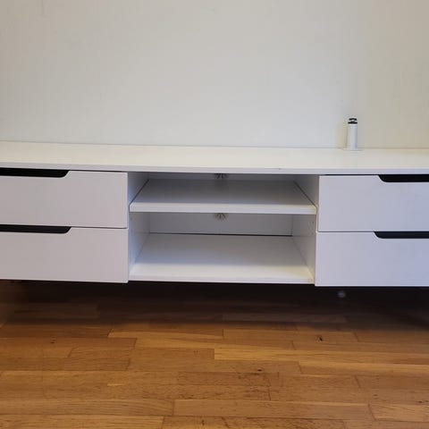 Annetaan musta TV-taso ja valkoinen laatikollinen yöpöytä (mitat K50 x L40 x S35). TV-tason korkeus pyörien (4kpl) kanssa. Molemmat ehyet ja siistit, ei naarmuja tai kolhuja.