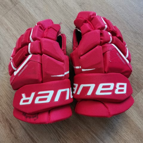 Bauer jääkiekkohanskat, koko 11" / 28 cm. Väri tummansininen. Hanskoissa pehmustetut sormet ja rystyset sekä vahvistettu kämmenosa jääkiekon pelaamiseen. Sopivat mailankäsittelyyn ja suojaamaan kättä jääkiekkoharjoituksissa ja -peleissä.