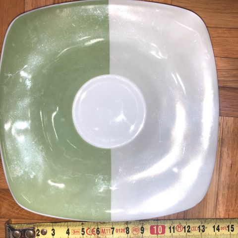 Tarjoilulautanen syvä, 6 syvää keittolautasta, 6 ruokalautasta, 5 kahvikuppia, 6 tasettia, 5 pullalautasta, maito/kermanekka.