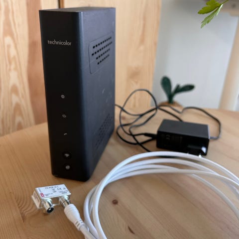 Technicolor CGA2121 kaapelimodeemi, joka ostettu Telialta 6/2023. Oli käytössä reilun vuoden verran ostohetkestä syksyyn 2024.