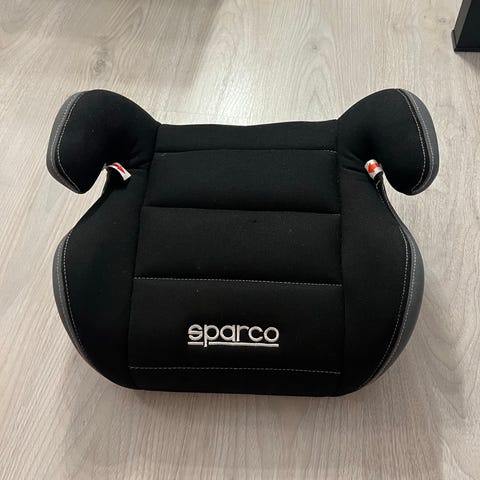 Sparco istuinkoroke 15-36kg. Väri on musta sinisillä yksityiskohdilla. Istuinosassa on 3cm pehmustettu kangaspäällinen ja sivuilla korotetut käsituet. Pohjassa on muovinen runko ja kiinnityshihna. Sopii käytettäväksi auton turvavöiden kanssa lapsen istuinkorokkeena valmistajan ohjeiden ja kokosuositusten mukaisesti.