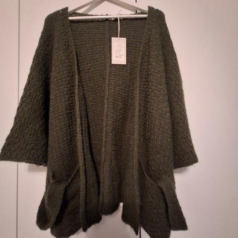 Asymmetrinen villa/silkki neuletakki, M-koko.