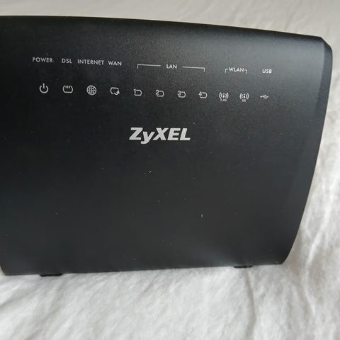 Laitteessa on useita Ethernet LAN -portteja (keltainen), yksi WAN-portti (sininen) sekä DSL-portti (harmaa). Takapaneelissa on virtaliitäntä, virtakytkin, WPS-painike ja reset-painike. Etupaneelissa on merkkivalot muun muassa virralle, internet-yhteydelle, langattomalle verkolle ja LAN-porteille.