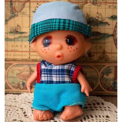 Vintage Komfy Kid -nukke, jota markkinoitiin myös nimellä Ice Cream Doll. Nämä nuket olivat suosittuja 1980-luvulla.