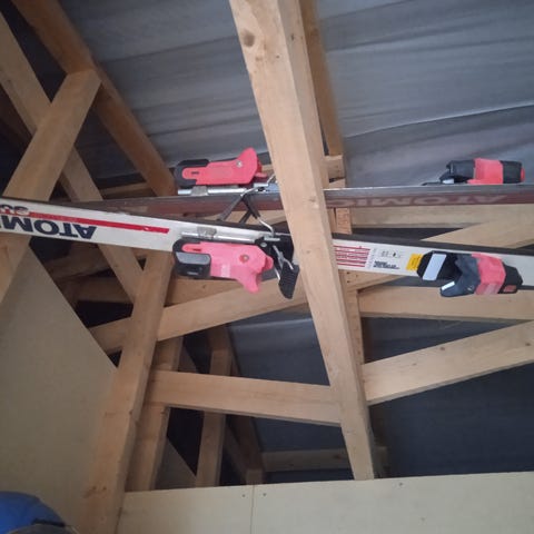 Vanhat, suorat laskusukset. 200 cm, vaikka kelkan jalaksiksi. Ehjät, kantit ruosteessa