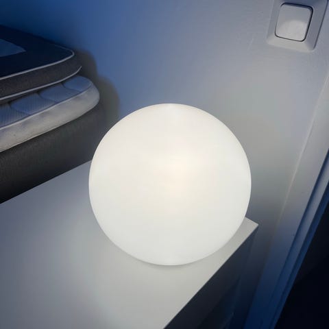 Jalka on metallia, kangasvarjostin on itse maalattu. Sisäpuolella valkoisissa tukiosissa hieman maalia, lähtevät varmaan hienolla hiekkapaperilla pois? Eivät kyllä näy ellei katso lamppua alhaaltapäin. Lampun korkeus on n. 61 cm ja varjostimen halkaisija alaosasta n. 30 cm. Lamppu on ostettu Ikeasta vuonna 2017 ja on siistissä kunnossa.