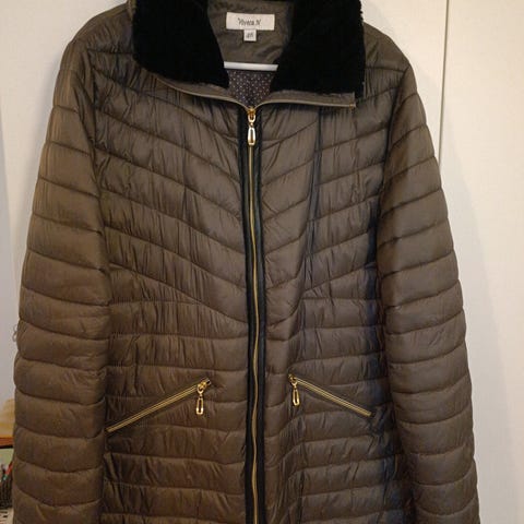 Lämmin, hyväkuntoinen, ruskea lyhyt toppatakki vanuvuorella, koko 46, K- Consept, made in Germany. Edessä vetoketju ja 2 vetoketjullista sivutaskua sekä sisällä povitasku myös vetoketjulla. Kauniit punaiset tereet sisävuorta koristamassa. Takki on täysin ehjä ja puhdas. Nouto Vantaan Tammistosta.