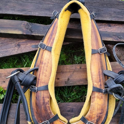 Suomenhevosella ollut, remmit vaatii kunnostusta.