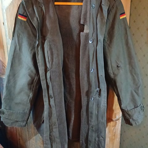 Paljon käytetty vintage Bundeswehr parkatakki jostain 80-luvun hämäristä. Valmiiksi reilusti kulutettu ja pari pientä reikääkin paikkaamatta. Taskut ehjät. Vähän saa nuotion tuoksuakin mukana. Vielä tällä porskuttaa mutta kangas alkaa olla aikas kulunutta. Irroitettava vuoritakki. Tästä katu-uskottavuutta keikoilla pönötykseen, myös germaanisen sivakoijan latu-uskottavuutta löytyy. Koko semmonen XL ehkä Xxl olisko se....Hyvä on ollu 116cm rinnanympärys ja reilummalla eturepun ympärysmitalla.