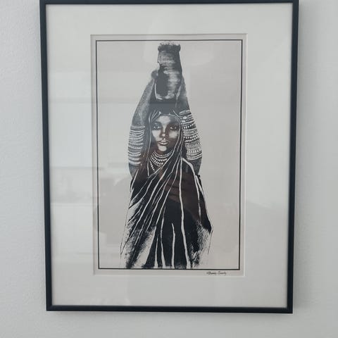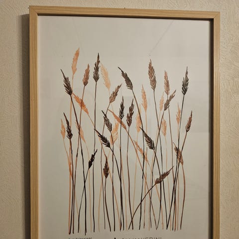Taulu on suorakaiteen muotoinen ja siinä on takana ripustusvaijeri seinälle kiinnitettäväksi.Kehyksessä on lasipinta.Kehyksen leveys 71 cm ja korkeus 100 cm