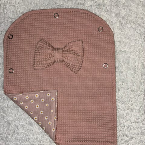 Helmenharmaa vauvan vaunuverho vohvelikankaasta. Tausta puuvillamusliinia, ilman rusettia voi käyttää molemminpuolin.