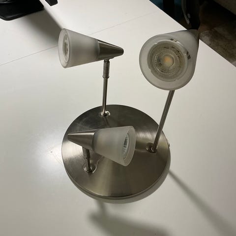 Kolme spottilamppua (max 35w, GU10), väri valkoinen. Kunto hyvä.