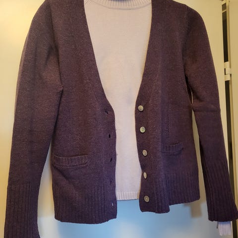Kerran käytetty lämmin puhtaan valkoinen neuletakki. 20% villaa.