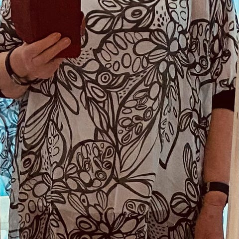 Naisten tunika koko L. Tunikassa koko merkintä XL, mielestäni sopii paremmin L koolle.Väri musta, kuviollinen. Sopii arki- ja siistimpään käyttöön muiden vaatteiden kanssa yhdisteltäväksi.