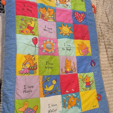 Myydään vähällä käytöllä ollut vauvojen leikkimatto. Kuosina avaruuspupu. Pysyy hyvin kasassa ja saa lisättyä omiakin leluja roikkumaan.