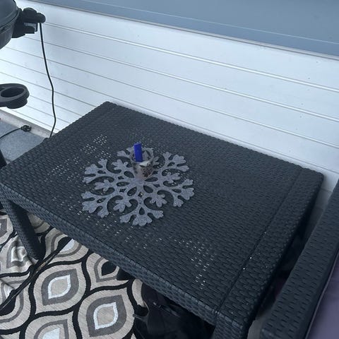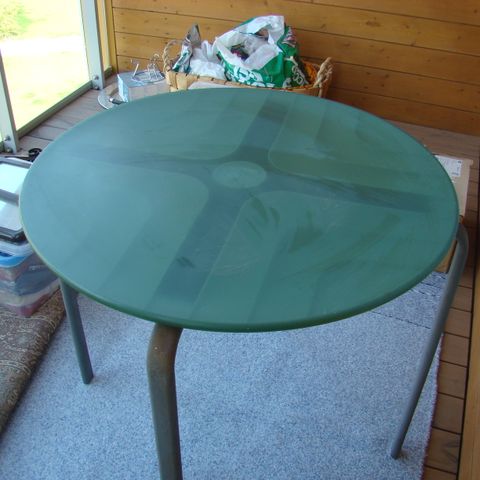 Pöydän jalan alle voi olla hyvä laittaa jotakin keikkumisen estämiseksi, mutta itse pöytä ja tuolit ovat vankat.