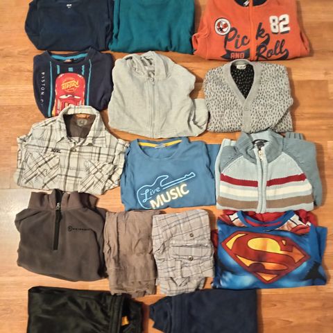Myydään lastenvaatepaketti kokoa 104-116. Muutamissa housuissa polvet olleet kovemmalla käytöllä ja hieman haalistuneet. Savuton ja eläimetön talous.