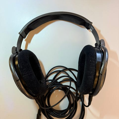 Myydään vähäisen käytön vuoksi ylimääräiseksi jääneet kuulokkeet. Testattu toimiviksi. Minimaalista kulumaa pannan etuosassa, mikä näkyy kuvissa. Kuulokkeiden kaveriksi lähtee pienestä lisähinnasta (5e) kuvassa näkyvä kuuloketeline.