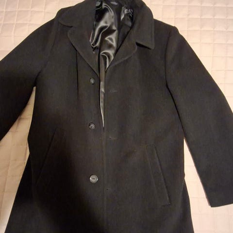 Miesten takki, koko 58. Väri musta ja materiaali kangasta. Takissa on korkea kaulus ja etupuolella taskuja. Helma ja hihansuut ovat joustavat. Sopii arki- ja ulkokäyttöön viileämpiin säihin. Mitta kainalosta kainaloon 72 senttiä, pituus 75 senttiä, Ostaja maksaa postikulut