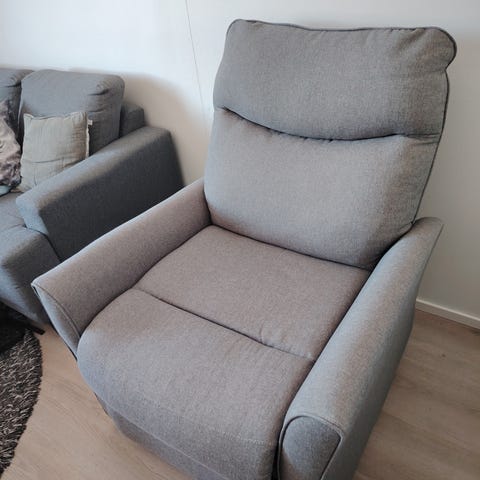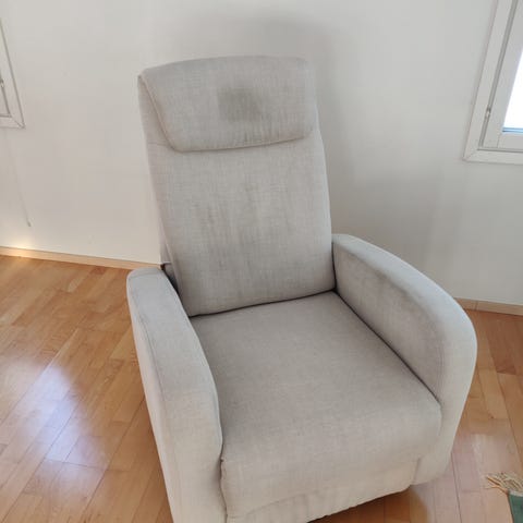 Askosta muutama vuosi sitten hankittu mekanismi nojatuoli. Mukava istua ja mekanismi toimii. Kangas on jonkin verran nukkaantunut. Nouto Espoon Lintuvaarasta.
