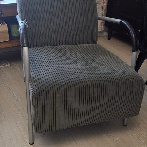 Annetaan hyvä ja siisti oranssi tai poltettu tiili kankainen, hyväkuntoinen mekanismi nojatuoli. Kuvissa näyttää jotenkin likaiselta, mutta "värjäymät" ovat vain kuvissa, ei itse tuolissa. Tuoli on hyväkuntoinen ja ehjä. Jalkataso nousee näppärästi vivusta. Vain nouto Pikkolasta sovitusti 20.2-22.2. Ei ole ollut eläimiä tai tupakoitu.