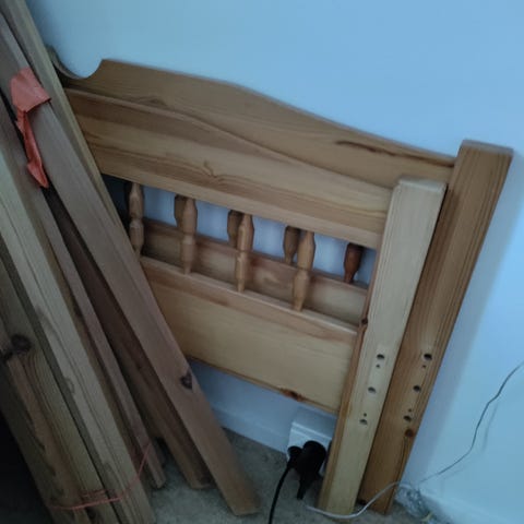 Kissatalous, jonkun verran raapimisjälkiä sängyssä.
