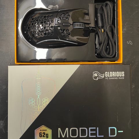 Glorious Model D- pelihiiri. Kevyt, noin 62 g painava hiiri, suunniteltu erityisesti pelaamiseen. Mallissa on hunajakennorakenne kuoren yläosassa, ergonominen muoto oikeakätiselle käyttäjälle sekä useita ohjelmoitavia painikkeita. Hiiri tukee säädettävää DPI-herkkyyttä ja siinä on RGB-valaistus. Liitäntä USB-kaapelilla. Soveltuu tietokoneen yleiskäyttöön ja pelaamiseen.