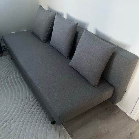 190cm leveä, 95cm syvä. Levitettynä sänky noin 120cm leveä.