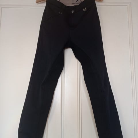 Equipage toppariratastushousut koossa XL. Mustat housut, joissa heijastinnauhat sivuilla ja lahkeissa. Vyötäröllä on joustava kuminauha. Materiaalina päällinen ja vuori polyesteriä sekä puuvillaa (tarkempi koostumus pesulapussa).